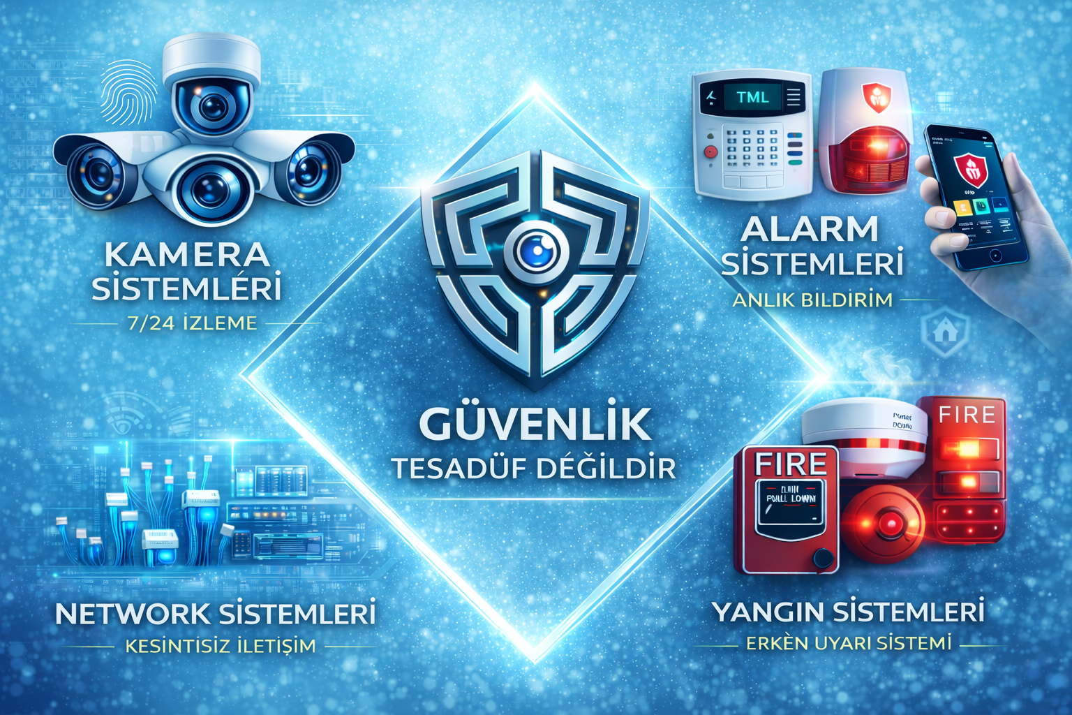 TML Güvenlik, Alarm , Yangın ve Kamera sistemleri alanında uzmanlaşmış bir firma olarak, müşterilerimizin güvenliğini en üst düzeyde tutmak ve hırsızlık, yangın ve diğer risklere karşı korumak için kaliteli ürünler ve profesyonel hizmetler sunmaktadır.